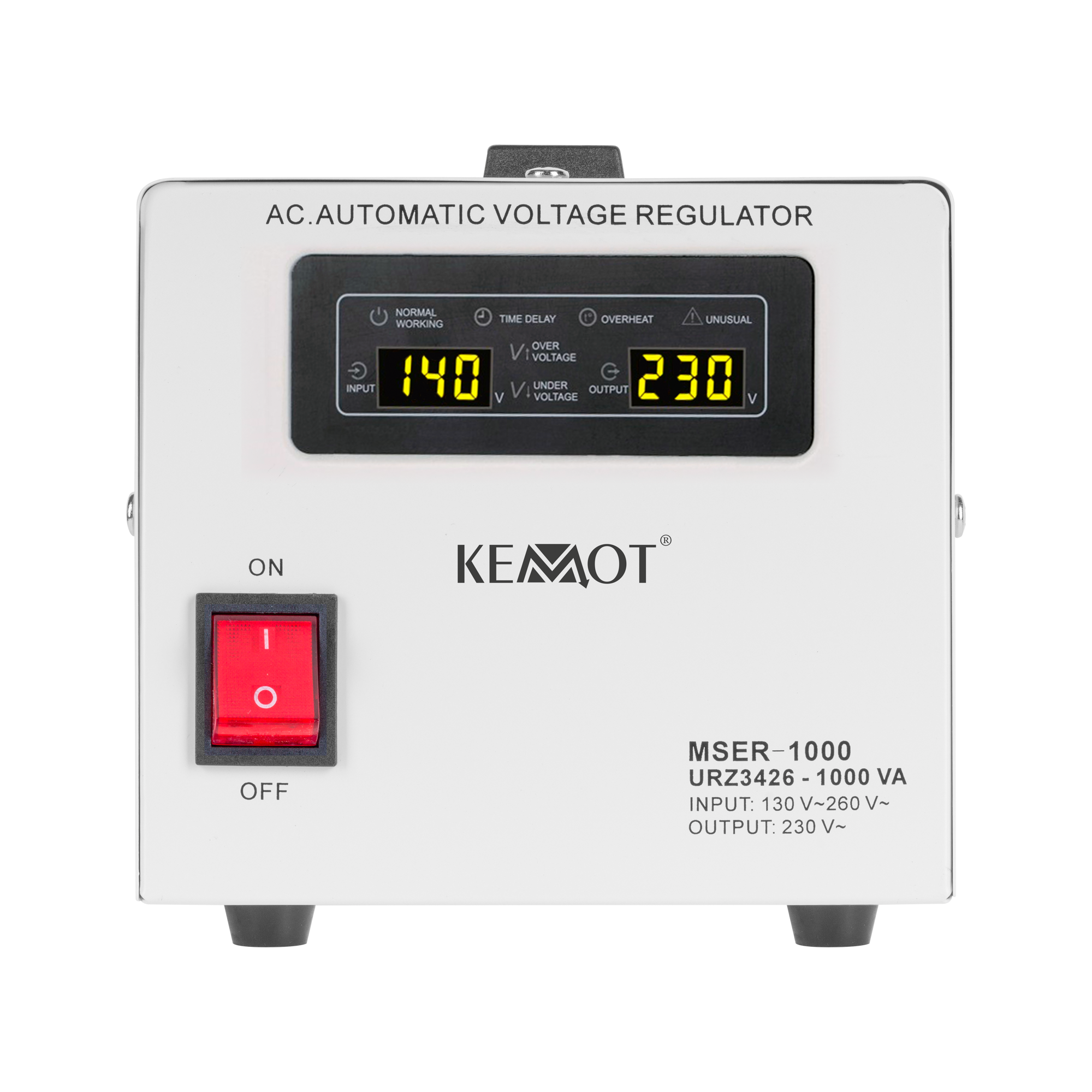 Автоматичний стабілізатор напруги Kemot MSER-1000 Він автоматично вирівнює подачу струму, підтримуючи стабільну роботу комп’ютерів, телевізорів, холодильників та іншого обладнання, що робить його корисним у дома чи в офісі для забезпечення безпеки та довговічності електроприладів.