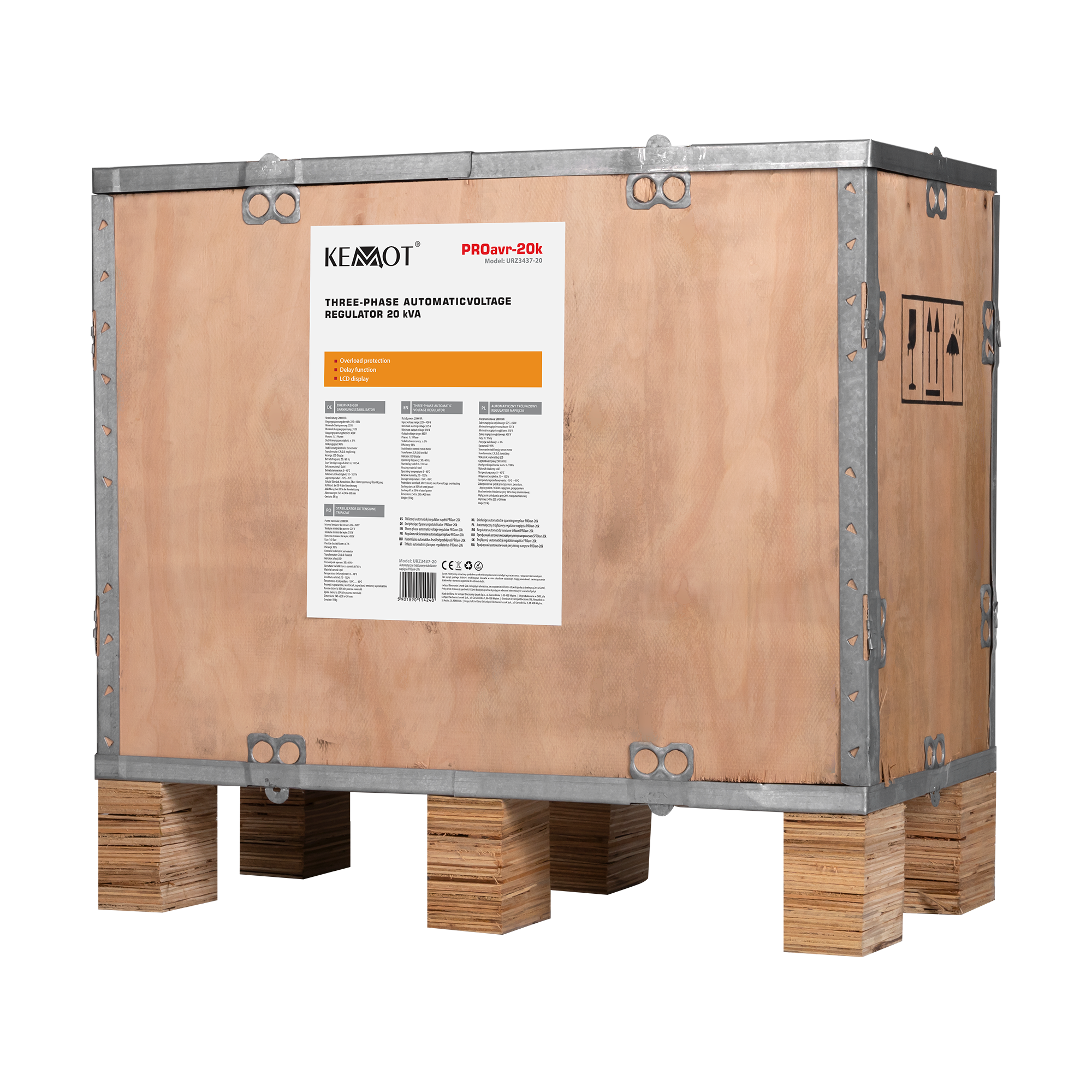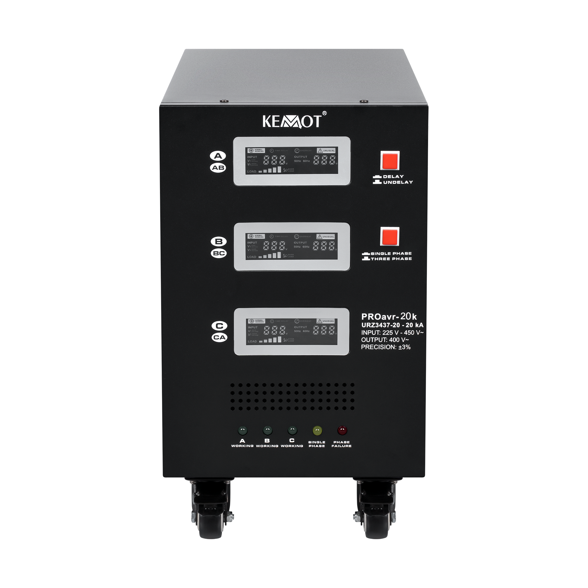 Автоматичний трифазний стабілізатор напруги KEMOT PROavr-20k – це автоматичний трифазний стабілізатор напруги потужністю 20 кВА, призначений для захисту і забезпечення стабільної якості електроживлення великого обладнання, побутових та виробничих навантажень при значних коливаннях мережної напруги.