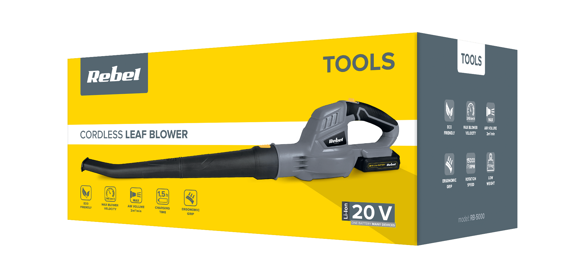 Вбудований акумулятор ємністю 2 А·год забезпечує 10 хвилин безперервної роботи . Однак, якщо ваш сад вимогливіший, Rebel Tools пропонує змінні акумуляторні батареї 20 В, 2 А , які подовжать час роботи пристрою, дозволяючи вам ще більше займатися прибиранням будинку.