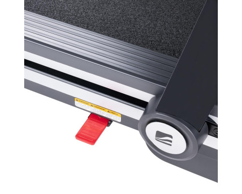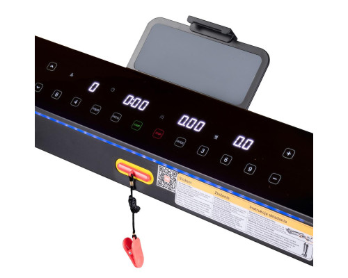 Якщо ви хочете відстежувати свій пульс під час тренувань, ви можете зробити це, оскільки бігова доріжка оснащена нагрудним ремінцем і має ручки із вбудованими датчиками серцевого ритму. Якщо ручки заважають вам під час тренування, ви можете скласти їх, щоб отримати додатковий простір. Ще однією унікальною особливістю цієї бігової доріжки є барвиста панель управління з підсвічуванням, яка змінює кольори залежно від того, наскільки швидко ви рухаєтесь зоною бігу.