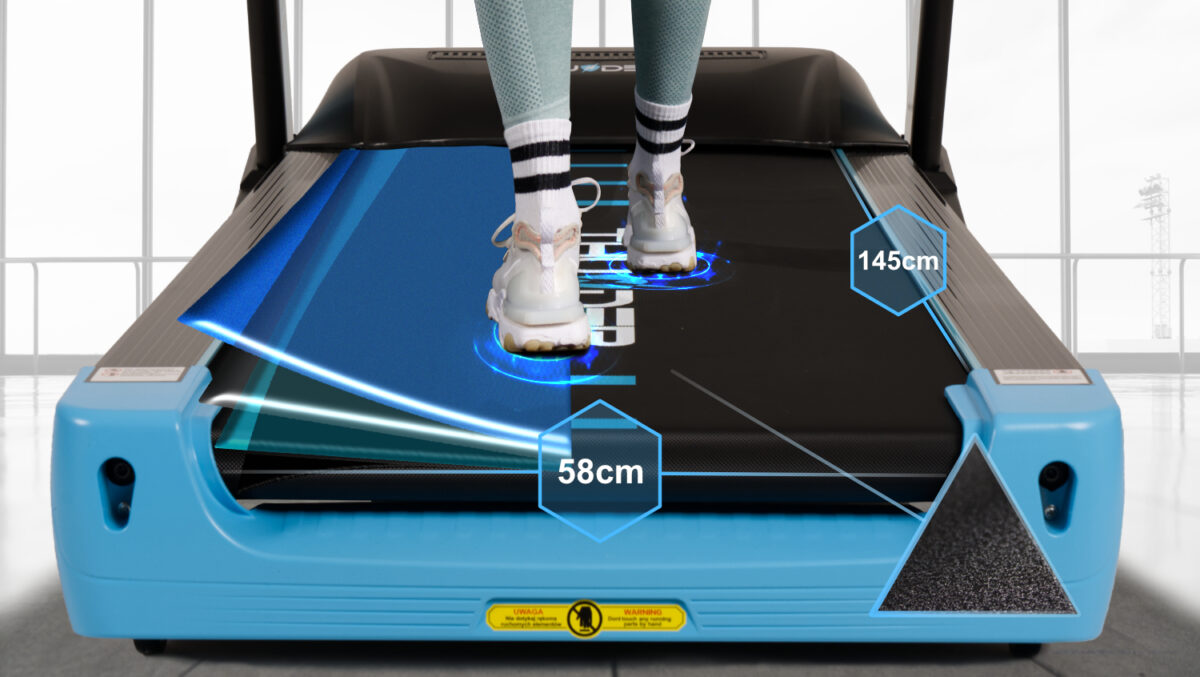 - Бігова поверхня (доріжка): 58 см x 145 см (ширина x довжина)