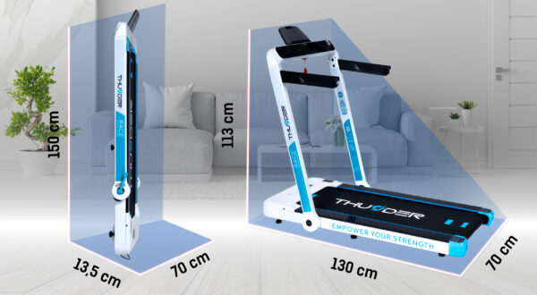 Бігова доріжка електрична THUNDER RACE-WHITE стильний та компактний тренажер преміум-класу від польського бренду THUNDER для ефективних домашніх тренувань. Сучасний дизайн у білому кольорі, складна конструкція та зручне керування роблять її ідеальним вибором для тих, хто цінує комфорт, естетику та надійність.