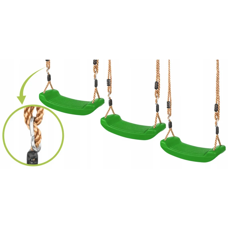 Контурне сидіння гойдалки забезпечує винятковий комфорт під час гри. Міцна конструкція та міцні канати гарантують стабільність та безпеку. Додатковою перевагою є легке складання та розбирання, що полегшує транспортування та зберігання гойдалки в міжсезоння.
