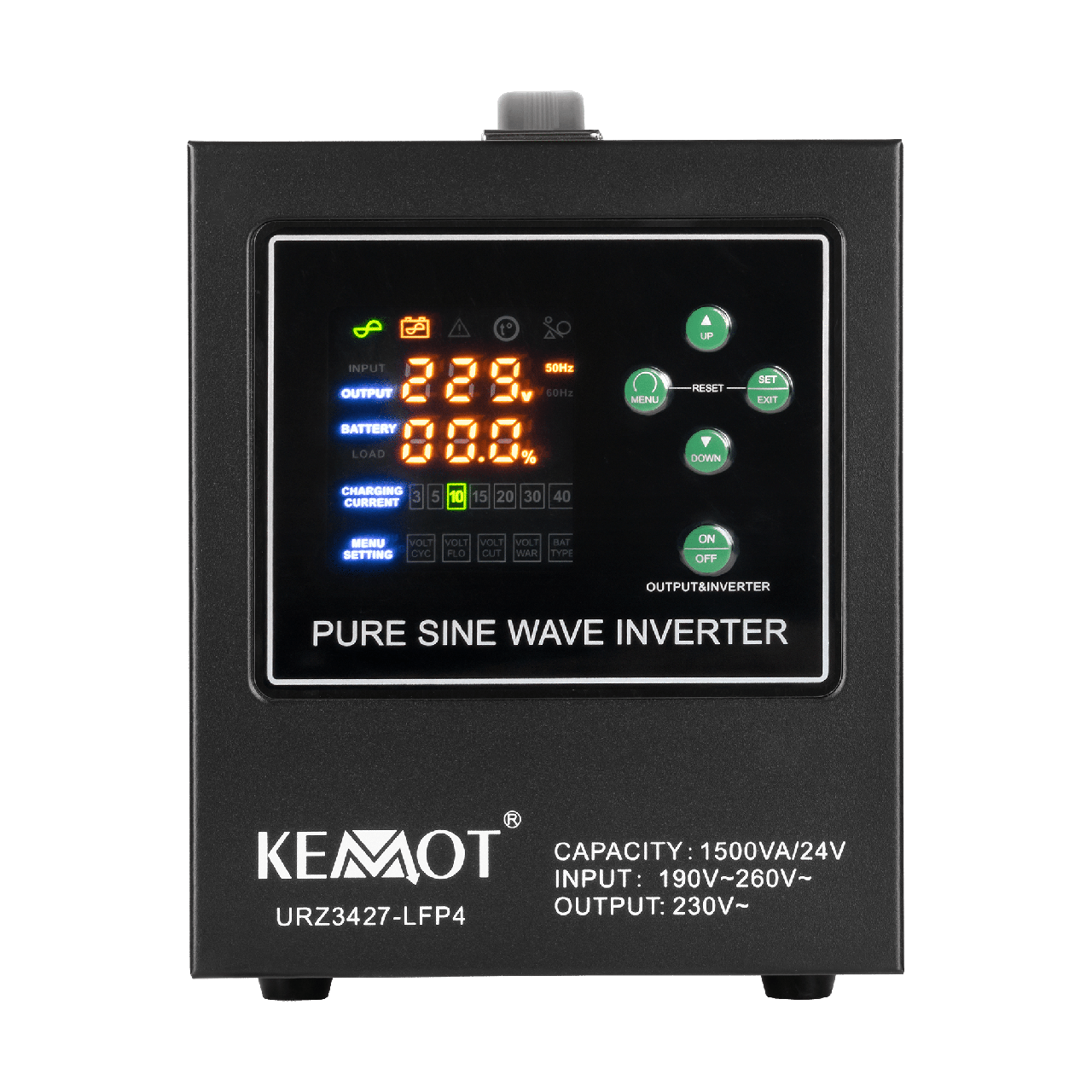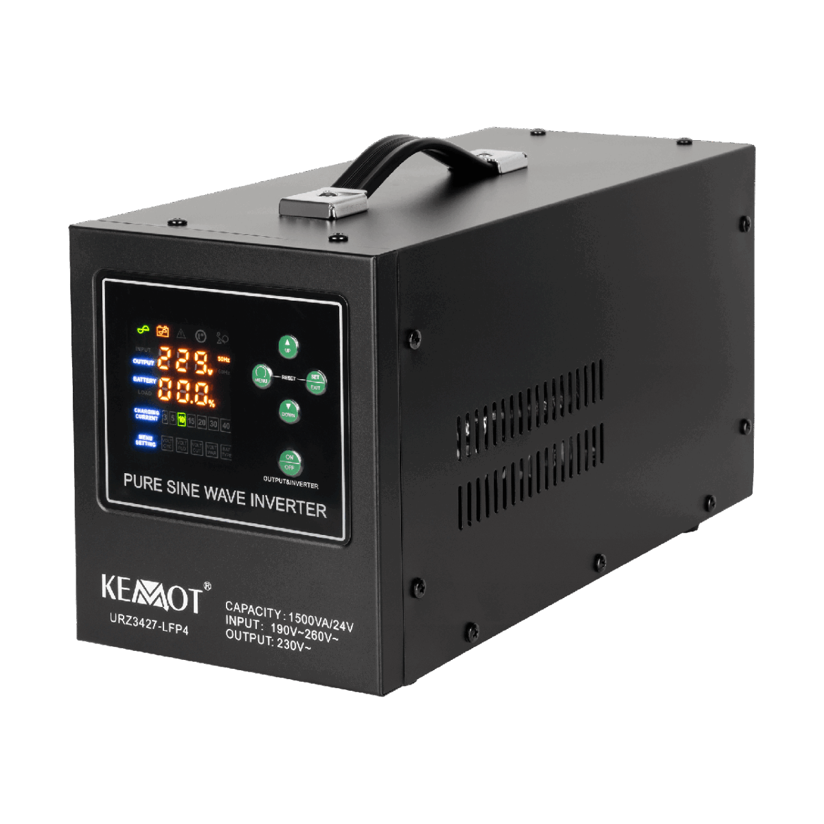 Джерело безперебійного живлення KEMOT PROsinus-1500/24-LFP4 призначене для стабільної роботи газових котлів, насосів, систем опалення, побутової електроніки та чутливого обладнання. Завдяки чистій синусоїді та високій ефективності пристрій забезпечує надійну роботу техніки під час перепадів напруги та повного зникнення живлення. Разом з акумулятором 24 V формується повноцінна система гарантованого живлення 230 V.