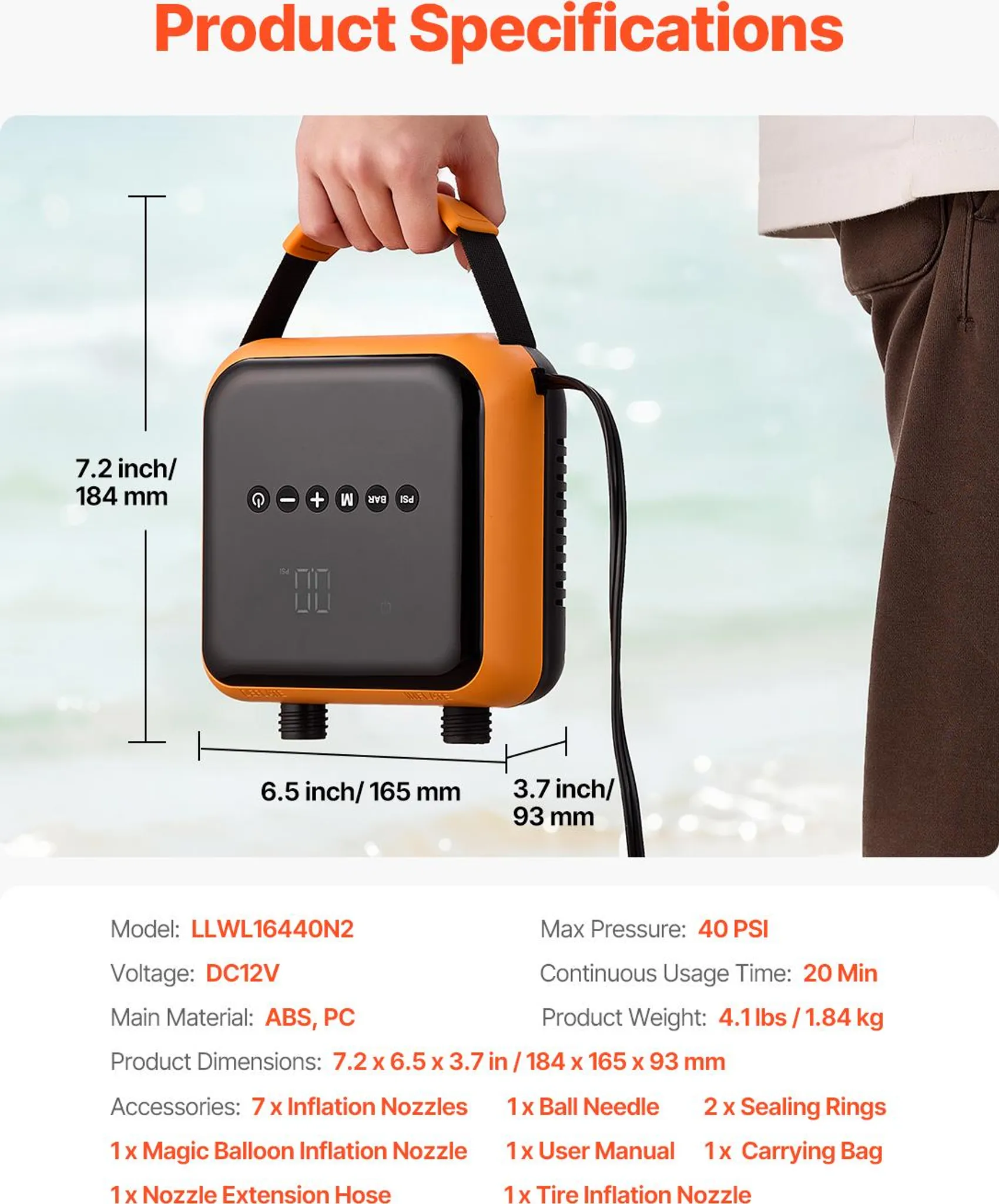 Повітряний насос 12 В постійного струму для SUP з автоматичним вимиканням для надувних дощок для SUP, каяків, човнів.