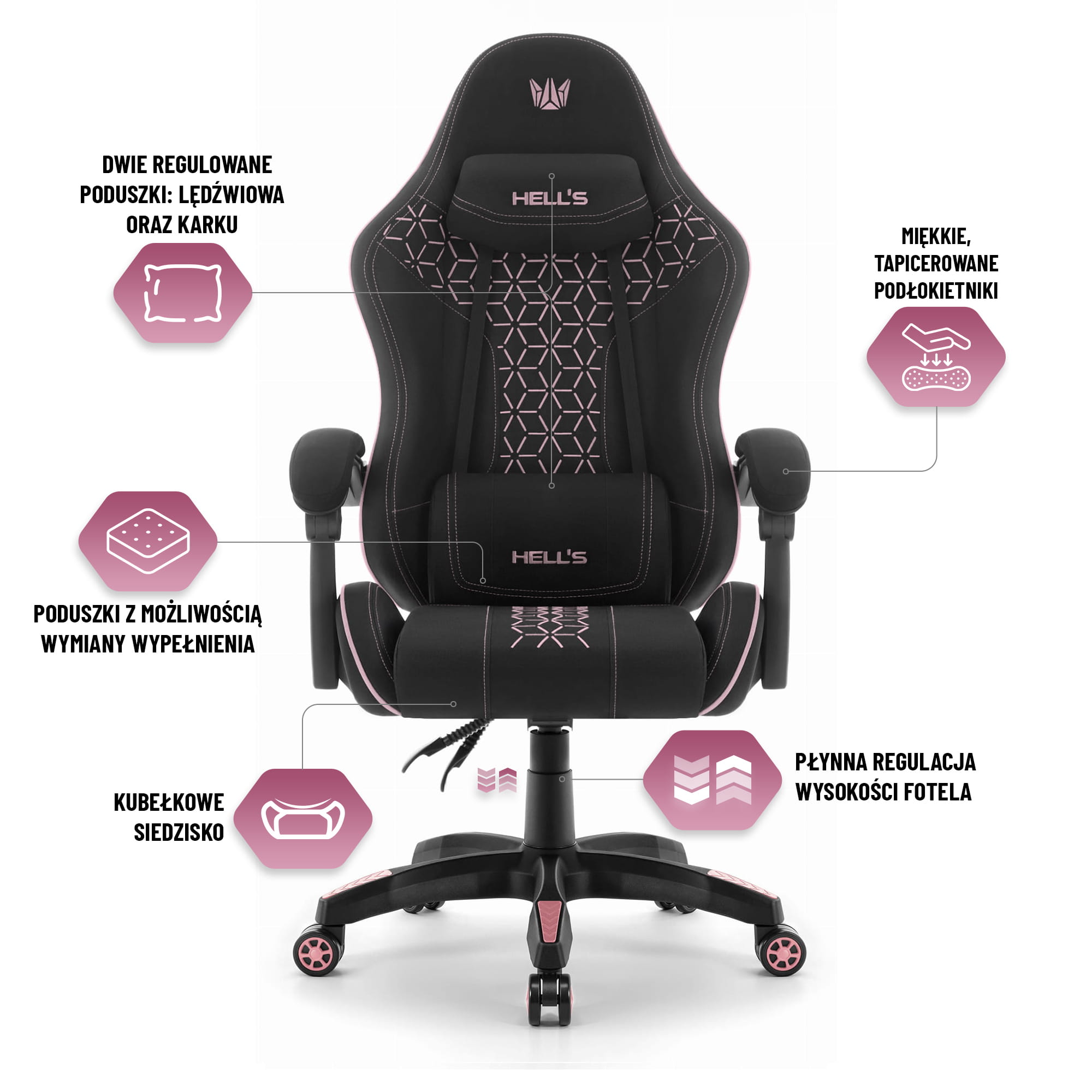 Геймерське крісло Hell’s Chair HC-1008 Black Pink 2.0 тканина/сітка – розроблено для тих, хто цінує унікальний та оригінальний дизайн . Воно поєднує перевірені рішення, такі як механізм плавного регулювання кута нахилу спинки, з унікальним та елегантним дизайном, який задовольняє смаки навіть найвибагливіших клієнтів.