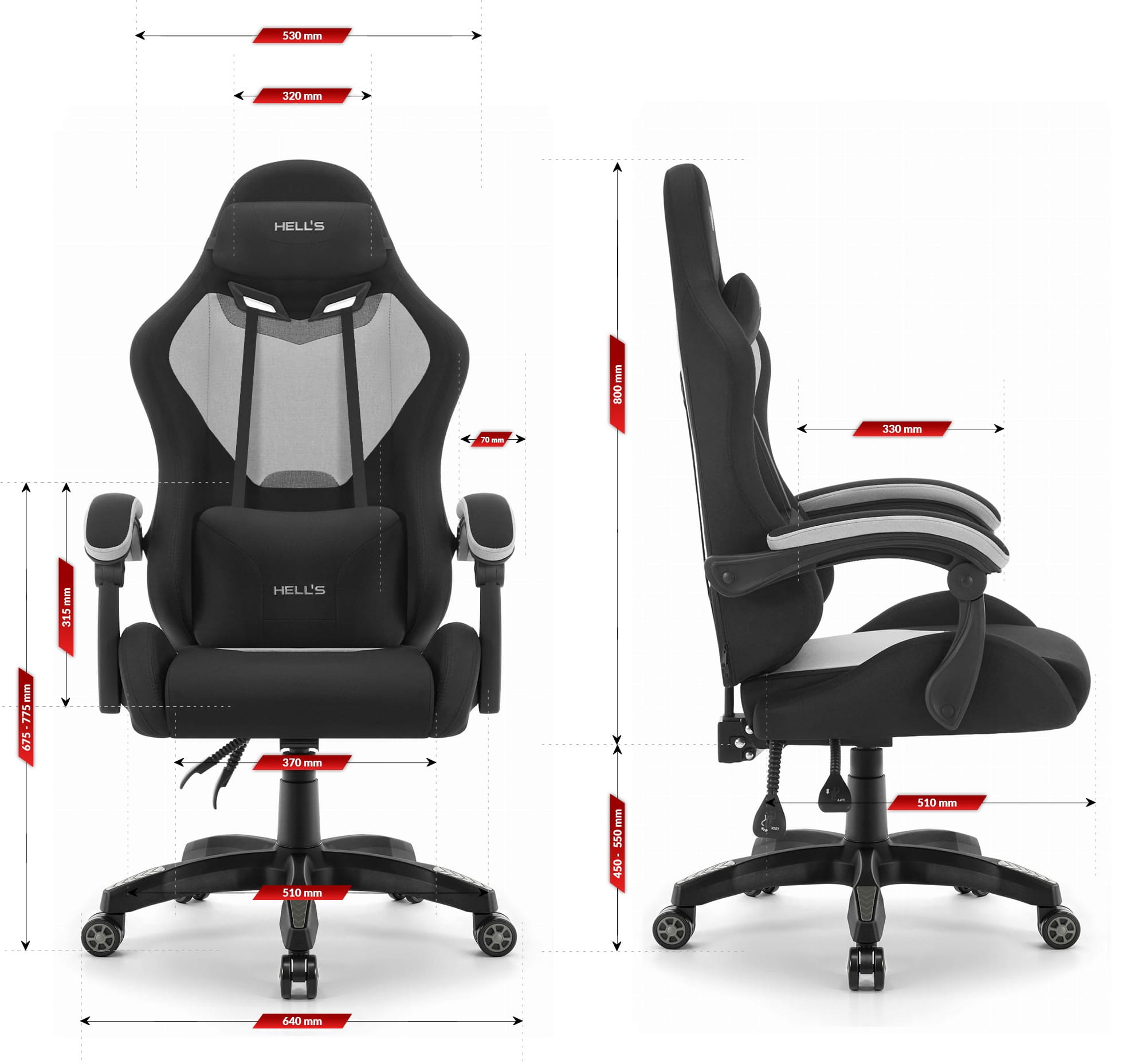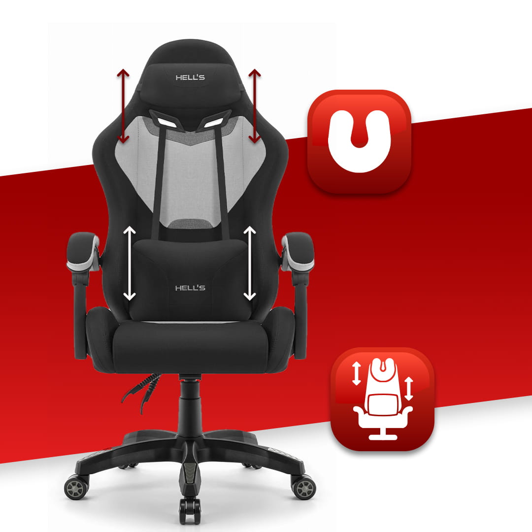 Геймерське крісло Hell’s Chair HC-1012 Black Grey тканина