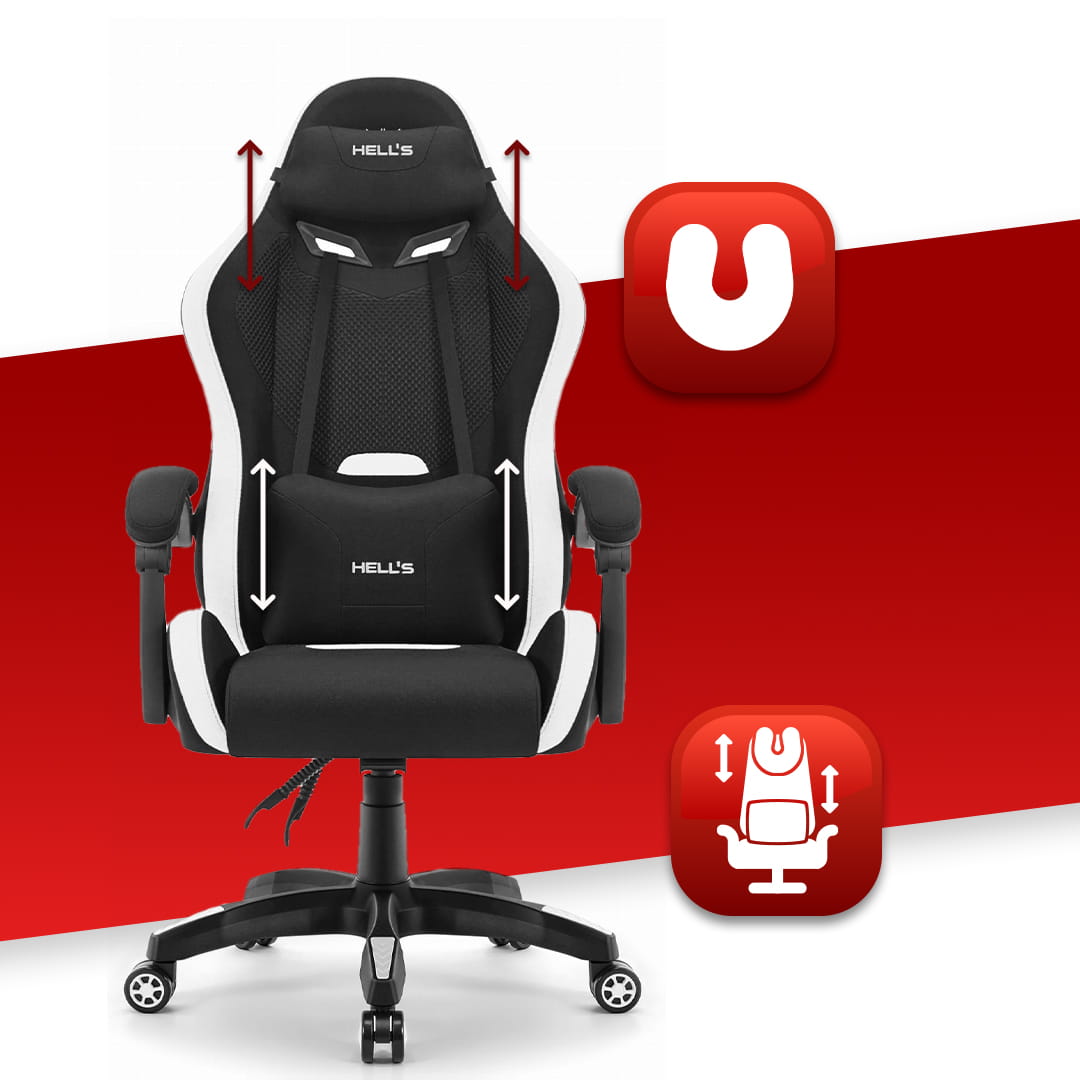 Геймерське крісло Hell’s Chair HC-1012 Black White тканина