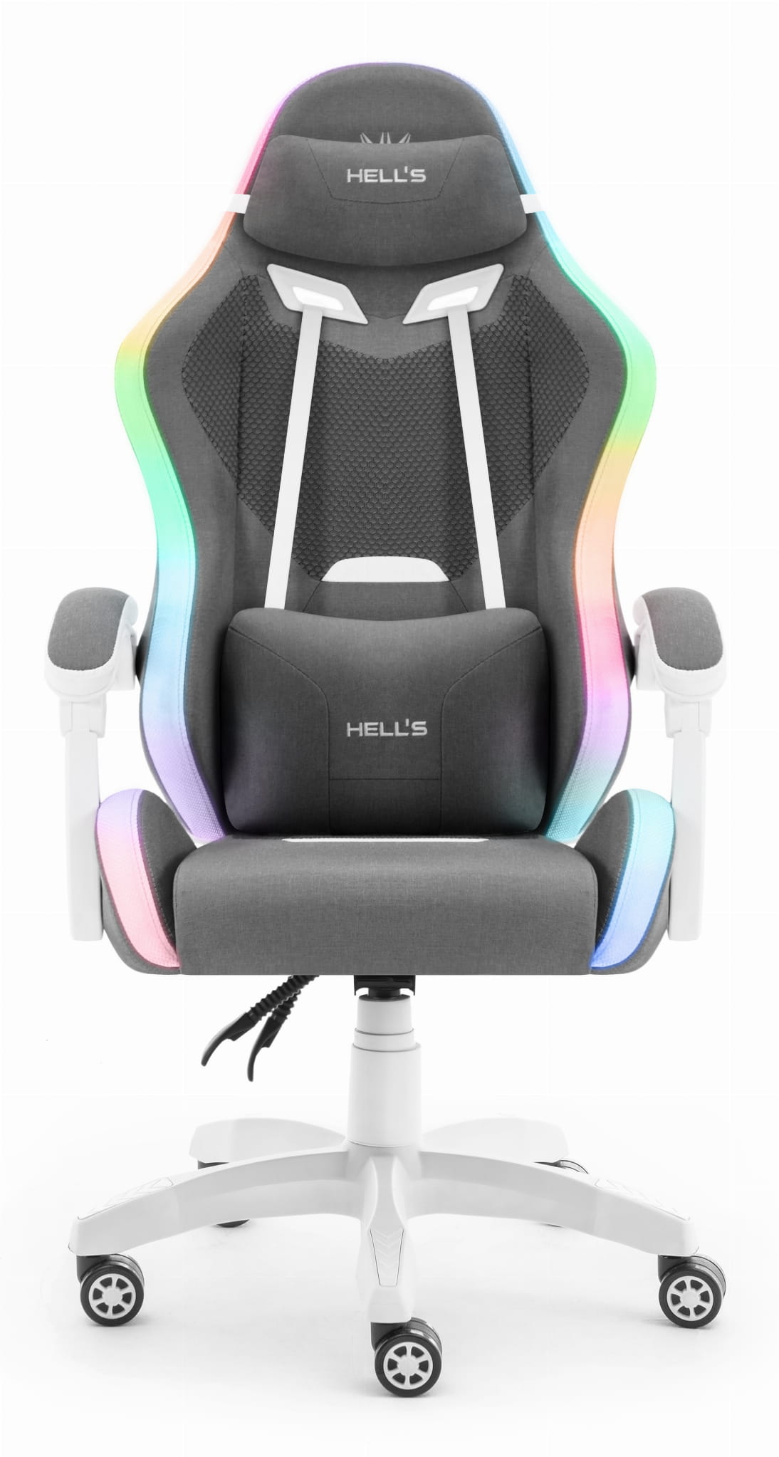 Геймерське крісло Hell’s Chair HC-1012 LED RGB Grey White тканина