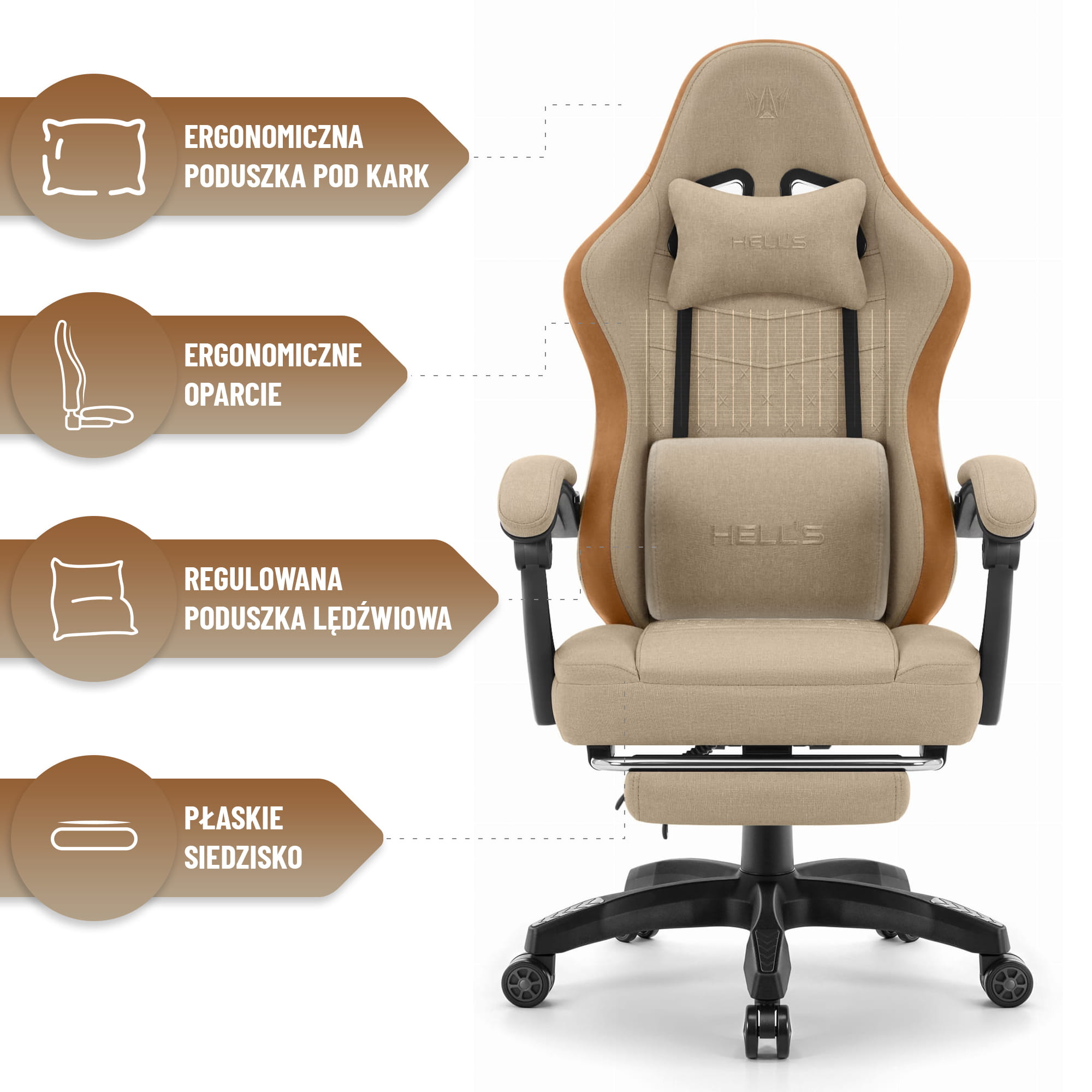 Геймерське крісло Hell’s Chair HC-1015 Beige тканина-це крісло, розроблене для тих, хто цінує унікальний та оригінальний дизайн . Гарантує комфорт під час тривалих ігрових сесій . Воно поєднує перевірені рішення, такі як механізм плавного регулювання кута нахилу спинки, з унікальним та елегантним дизайном, який задовольняє смаки навіть найвибагливіших клієнтів.
