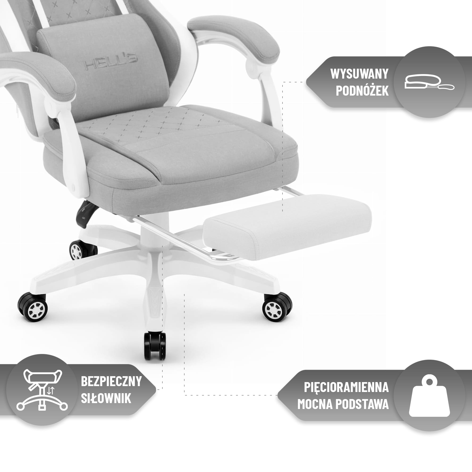 Геймерське крісло Hell’s Chair HC-1015 Grey White тканина.