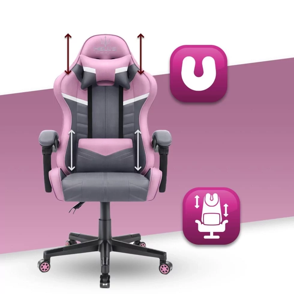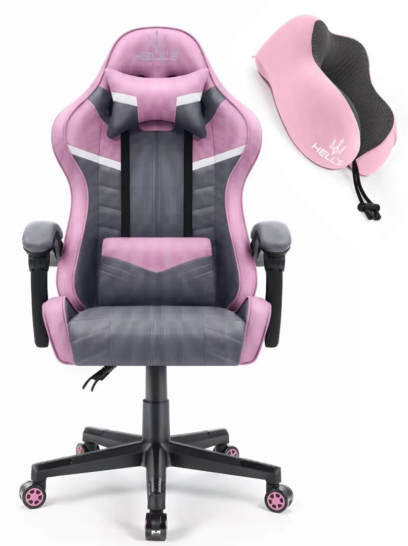 Ігрове крісло HELL’S CHAIR HC-1004, сіро-рожеве, тканинне+подушка Memory U.