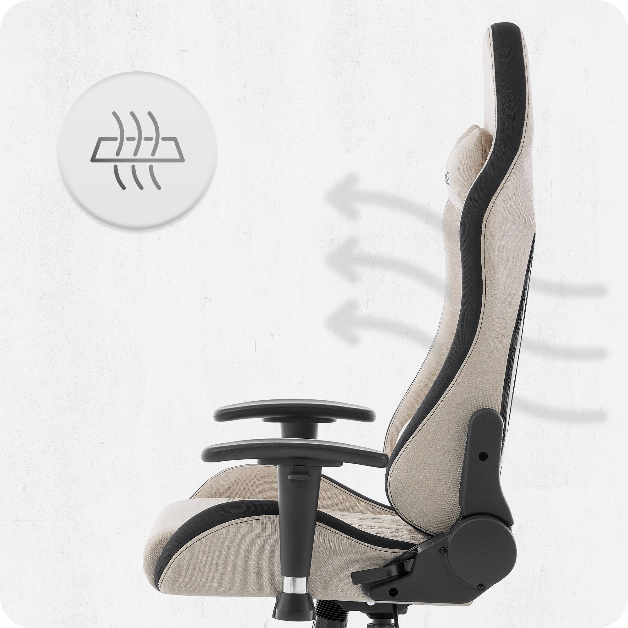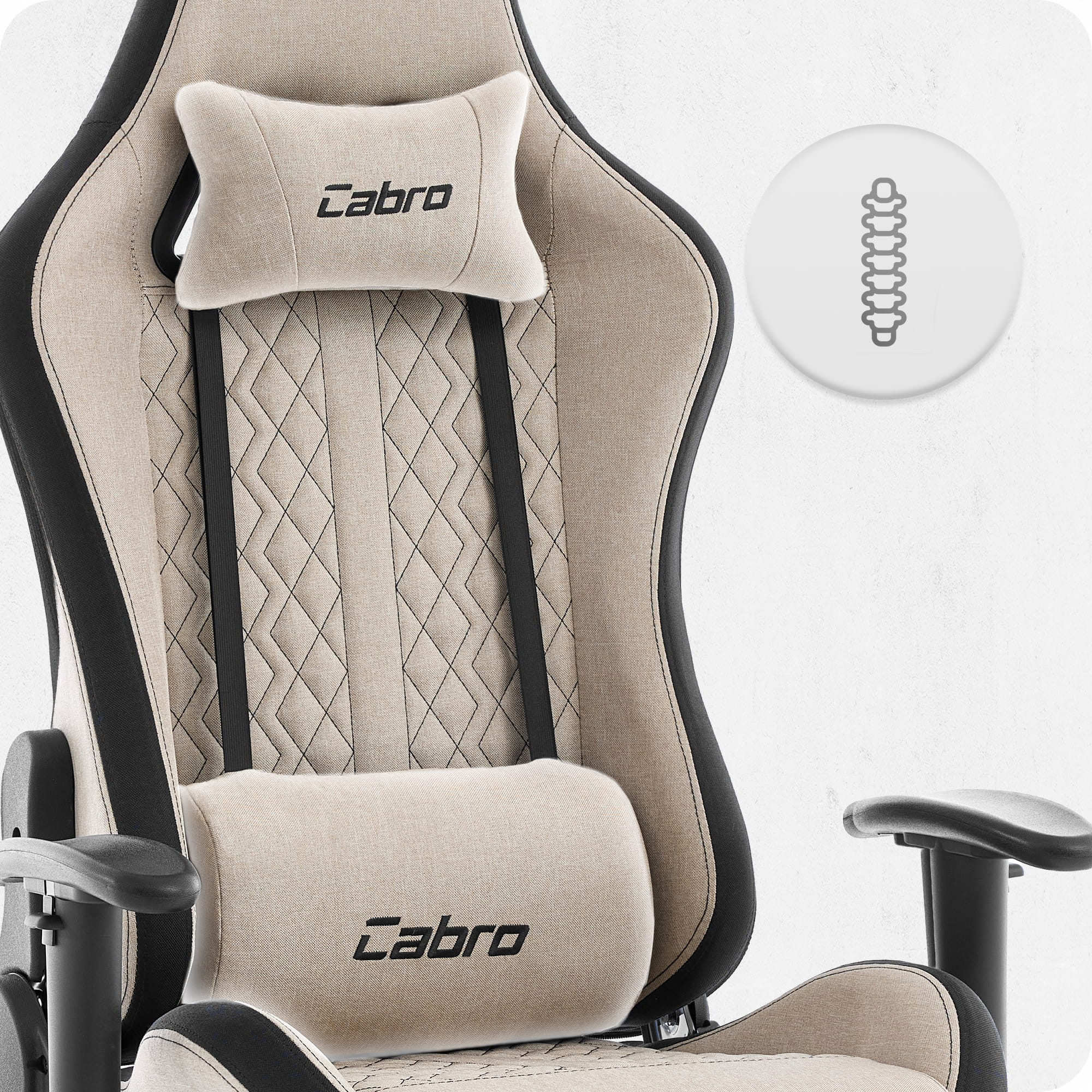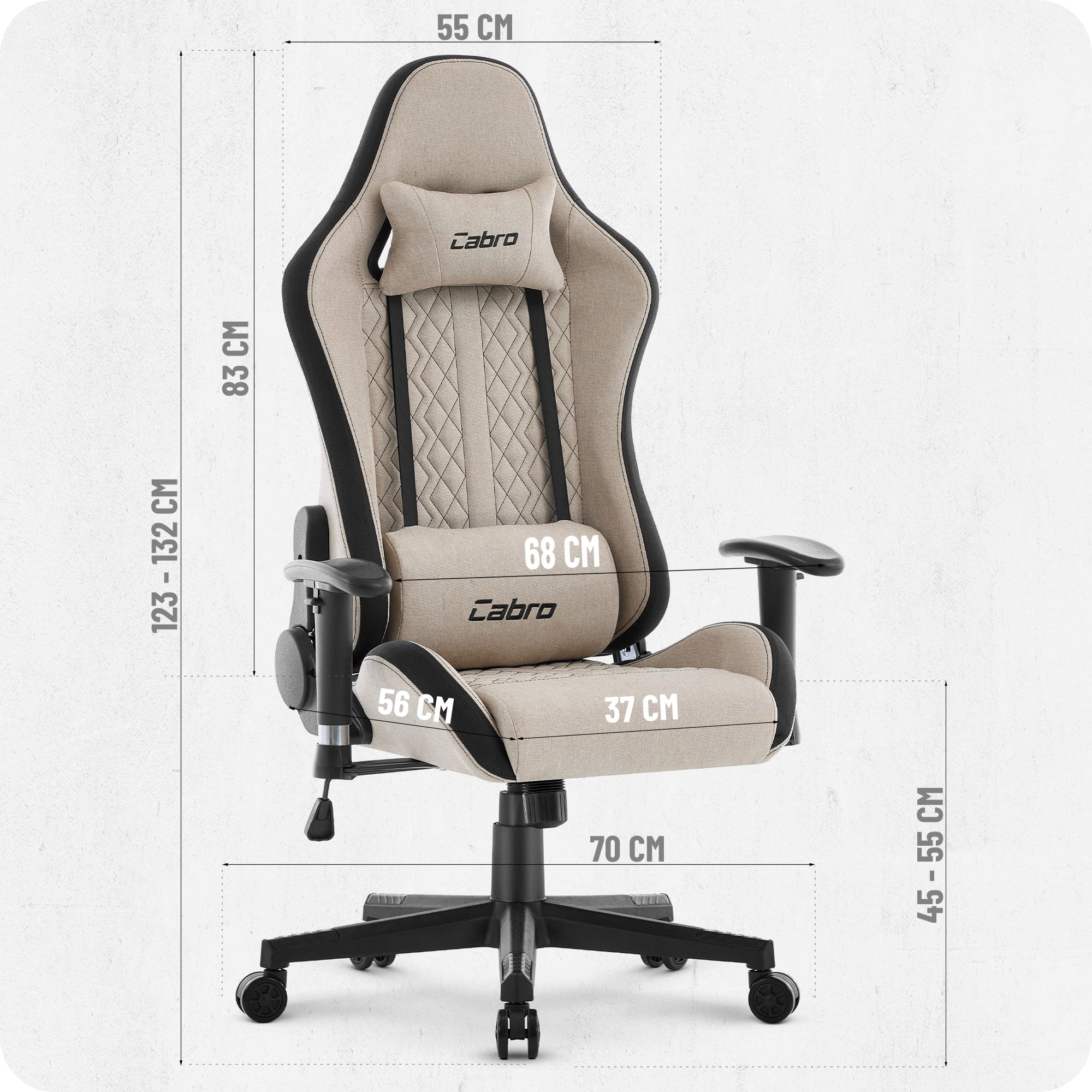 Ігрове крісло Cabro C508 Beige тканина Тканинна оббивка забезпечує хорошу вентиляцію та комфорт навіть під час тривалого сидіння, що особливо важливо для щоденного використання.
