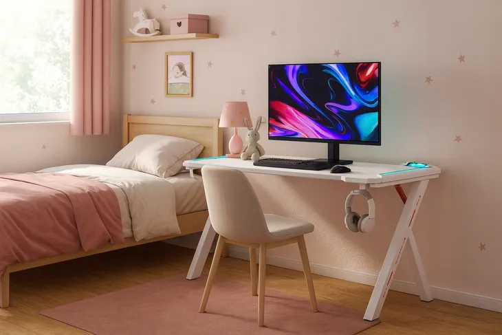 Ідеально підходить для кімнати підлітка – сучасний вигляд, практичні ручки та ергономічний дизайн роблять цей стіл ідеальним для кімнати підлітка. Це не тільки ігрова станція, але й зручне місце для книг, зошитів та ноутбука.