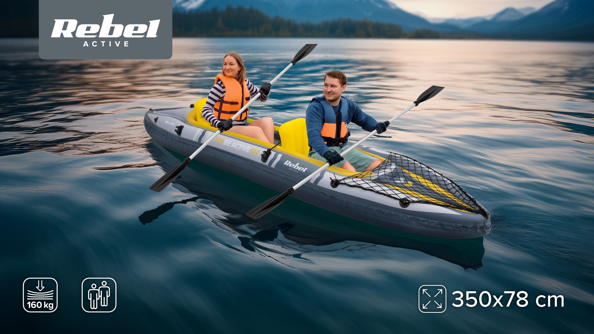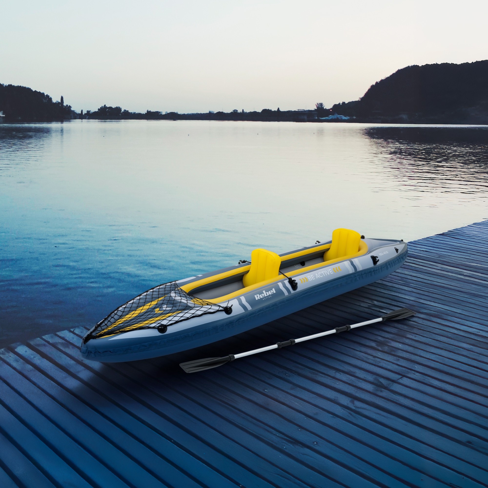• Відкрийте для себе каяк, який зробить ваші водні пригоди ще легшими та приємнішими. Ця двомісна модель із серії Rebel Active — це легка надувна конструкція, розроблена для пар, друзів або батьків з дітьми. Компактний, стабільний та надзвичайно комфортний, він ідеально підходить для рекреаційного веслування на озерах, річках та спокійних водоймах. Це практичне рішення для тих, хто хоче насолоджуватися природою без складної підготовки чи важкого спорядження.