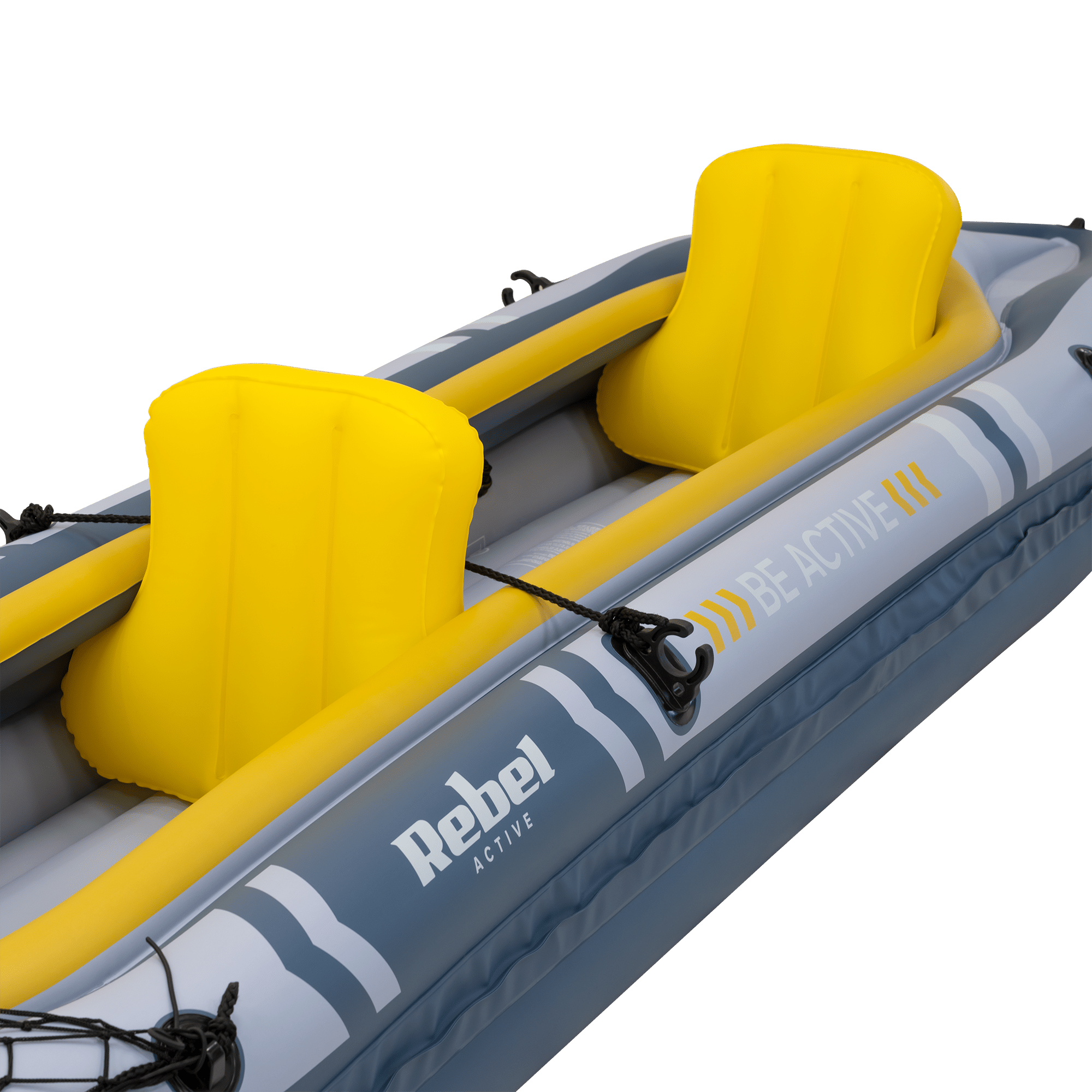Два надувні регульовані сидіння забезпечують комфортне положення для вас та вашого супутника. Міцні спинки з ПВХ підлаштовуються під ваше тіло, забезпечуючи стабільну підтримку спини та комфорт навіть у тривалих поїздках. Сидіння легко знімаються та складаються – після здування вони займають мінімум місця.