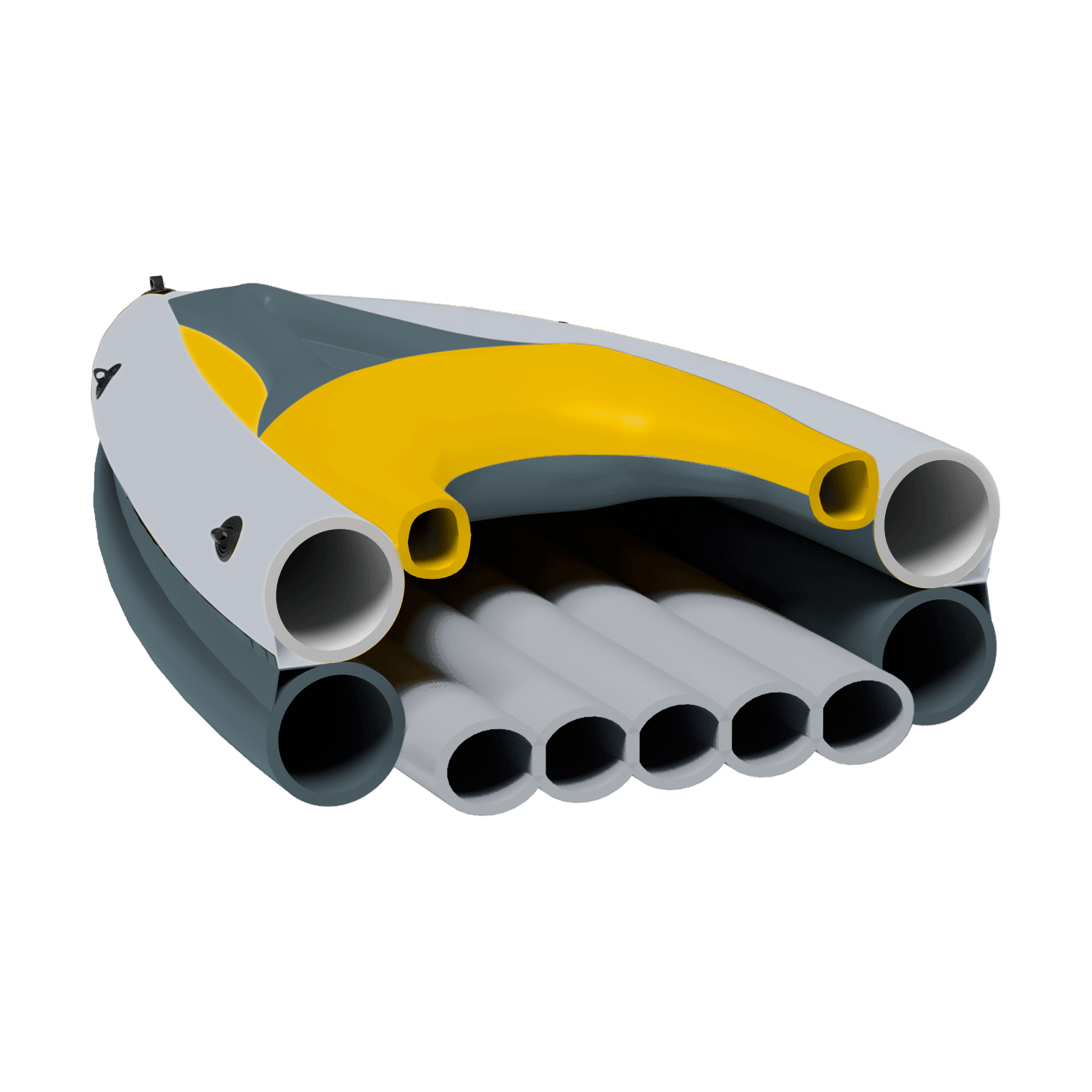 I-подібна балка підлоги забезпечує виняткову жорсткість і стійкість, дозволяючи каяку зберігати свою форму та добре реагувати на рухи весла. Два інтегровані плавники покращують керованість та полегшують контроль напрямку, навіть за сильної течії або вітру. Це поєднання забезпечує впевнене та плавне керування за будь-яких умов.