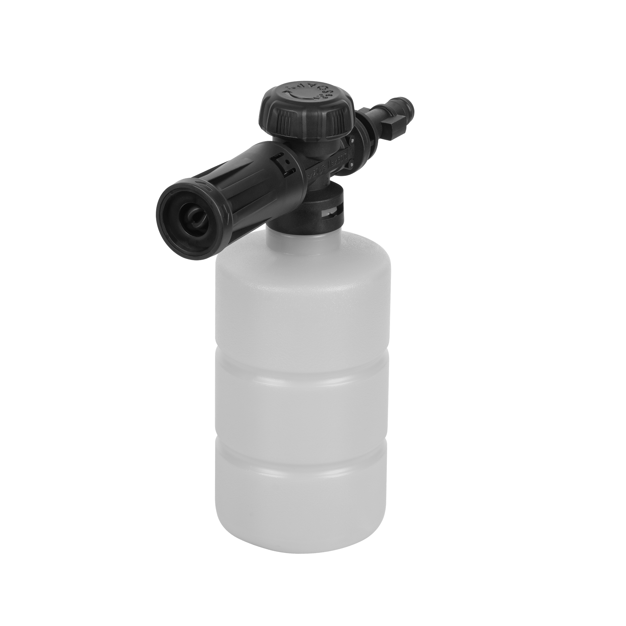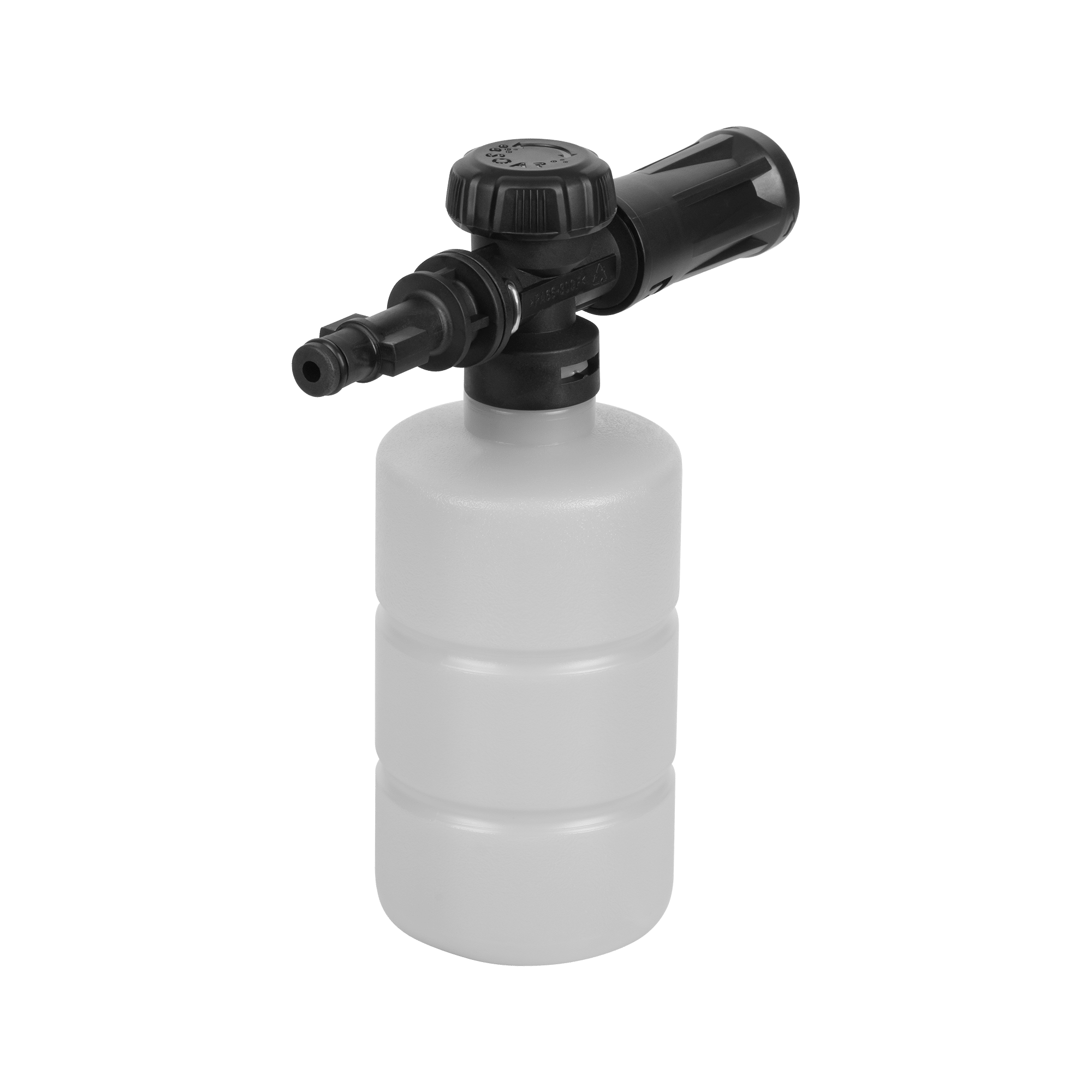Піноутворювач пропонує функцію регулювання потоку піни, що дозволяє налаштувати інтенсивність очищення залежно від типу та ступеня забруднення поверхні. Крім того, регульований об’єм миючого засобу дозволяє економно використовувати миючі засоби, забезпечуючи ефективне очищення без надмірного споживання хімікатів. Контейнер для миючого засобу легко наповнювати, що ще більше підвищує зручність використання.