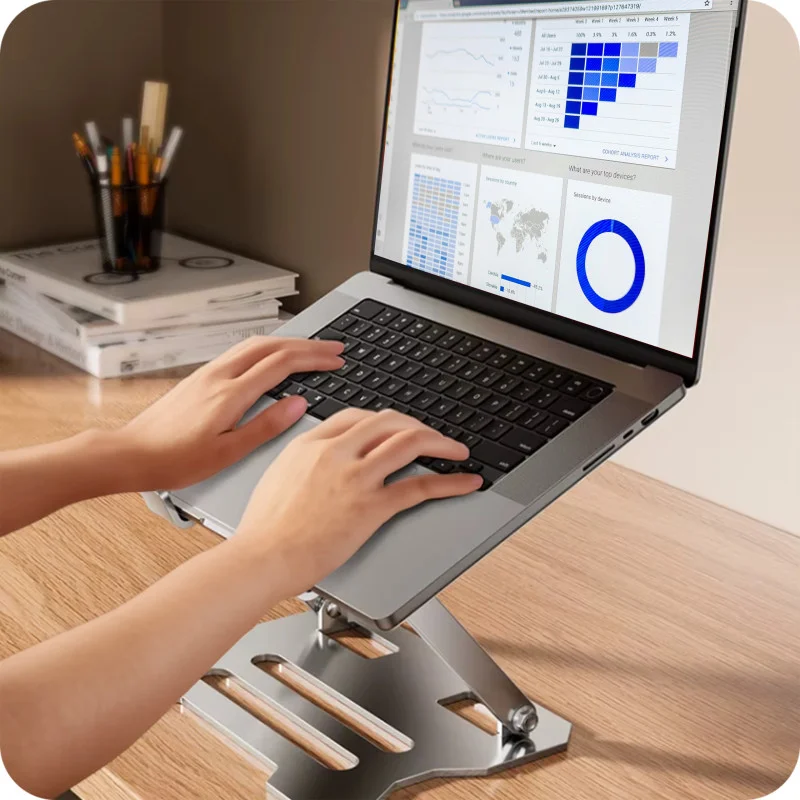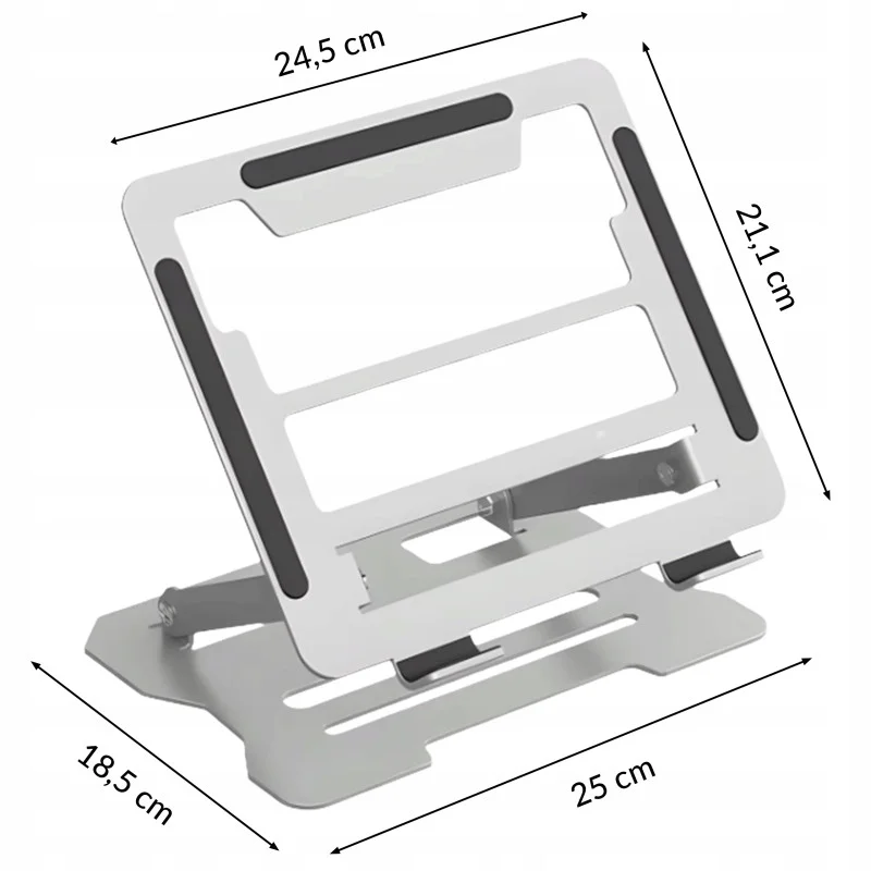 Стабільна, важка металева основа, яка піднімає ваш ноутбук на зручну висоту, покращує вентиляцію та знімає напругу шиї під час роботи. Ідеально підходить для офісу, дому та дистанційного навчання.