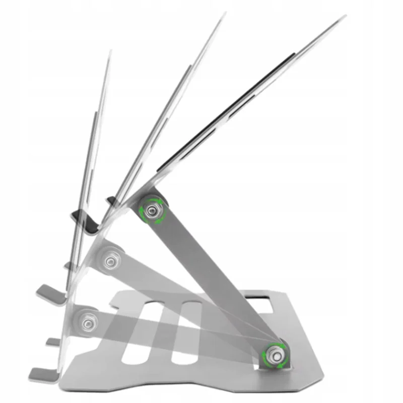 Регульований механізм дозволяє змінювати кут нахилу, а широка верхня панель зручно підходить для більшості ноутбуків, ультрабуків та більших планшетів. Отвори в панелі покращують потік повітря під комп’ютером, зменшуючи нагрівання.