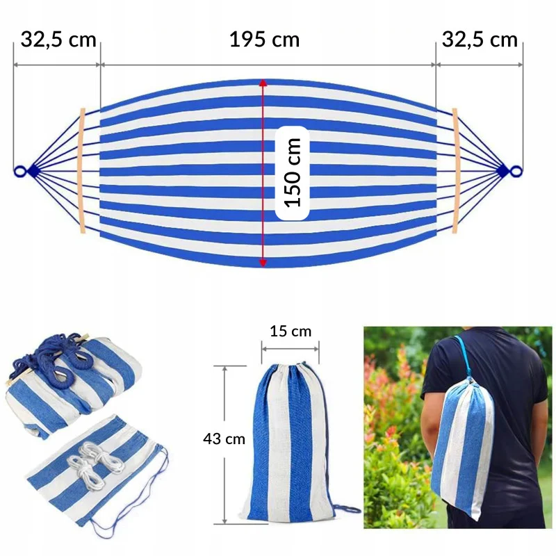- 1 гамак з дерев’яною аркою синього та білого кольорів