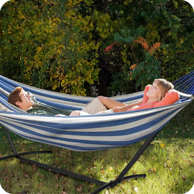 Наш гамак з каркасом ідеально підходить для саду, патіо або кемпінгу. Ви також можете використовувати його в приміщенні, якщо у вас достатньо велика кімната.
