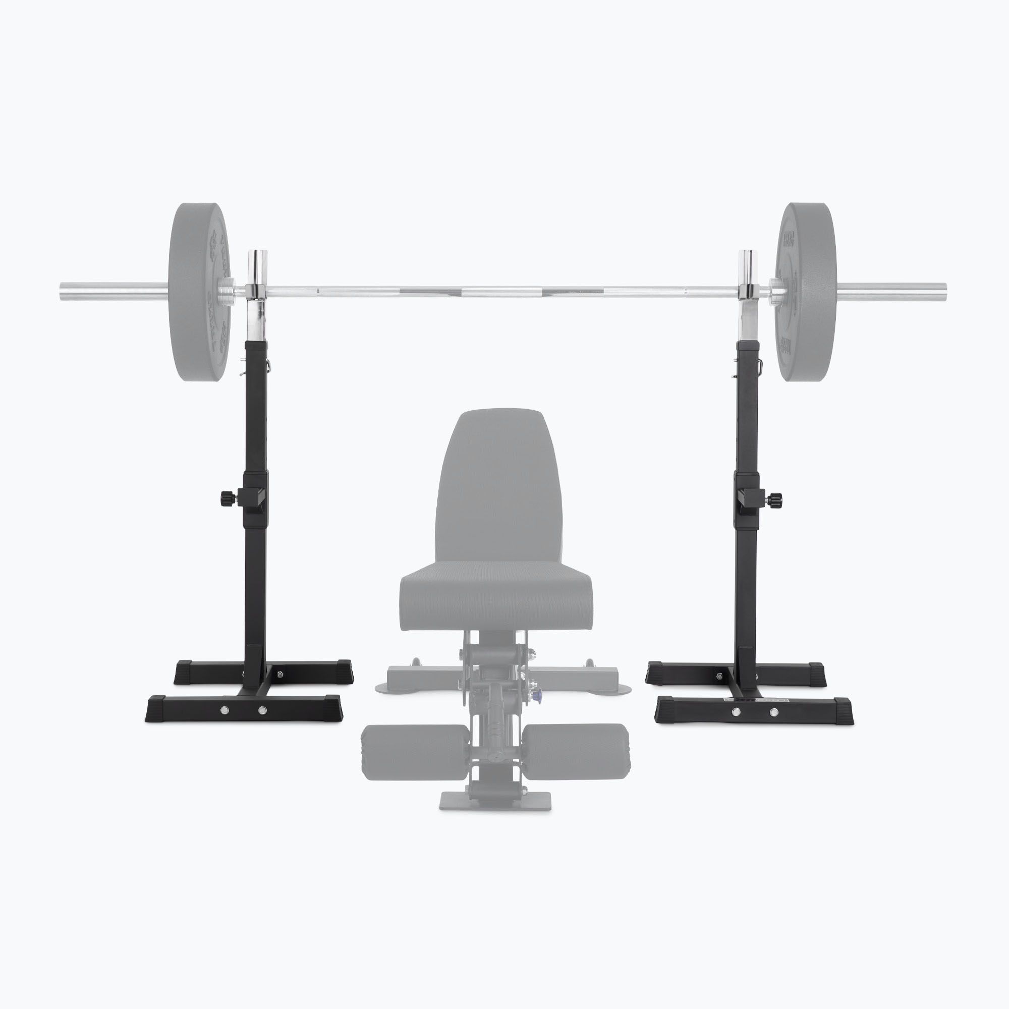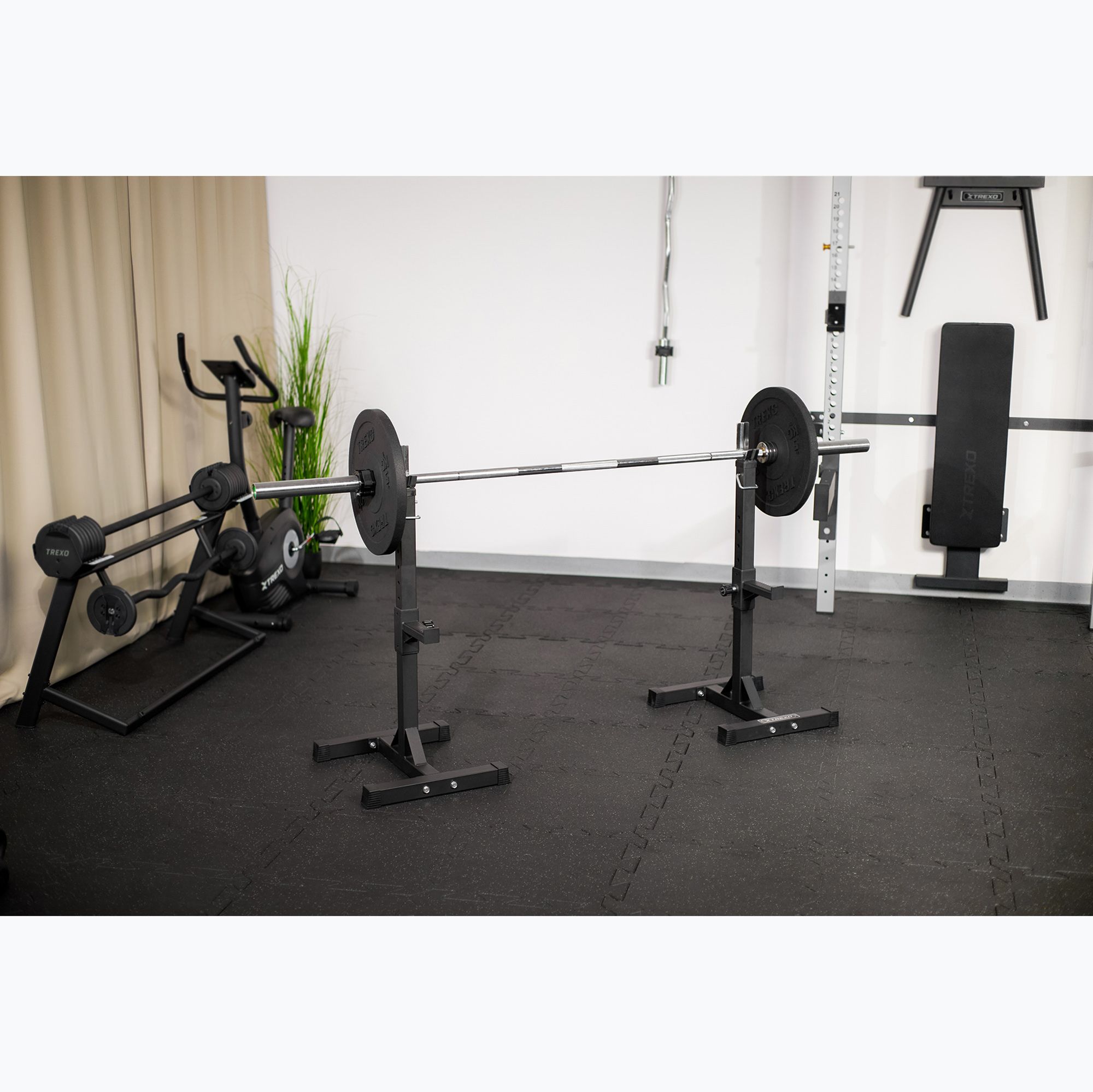 Перевагою моделі XTREXO є відсутність з’єднання між стійками – це два окремі елементи, які можна вільно розставляти відповідно до довжини штанги чи вподобань користувача. Така конструкція дозволяє краще пристосувати тренувальний простір і полегшує використання будь-якого типу лавки. Їх можна розсунути ширше або встановити ближче один до одного.