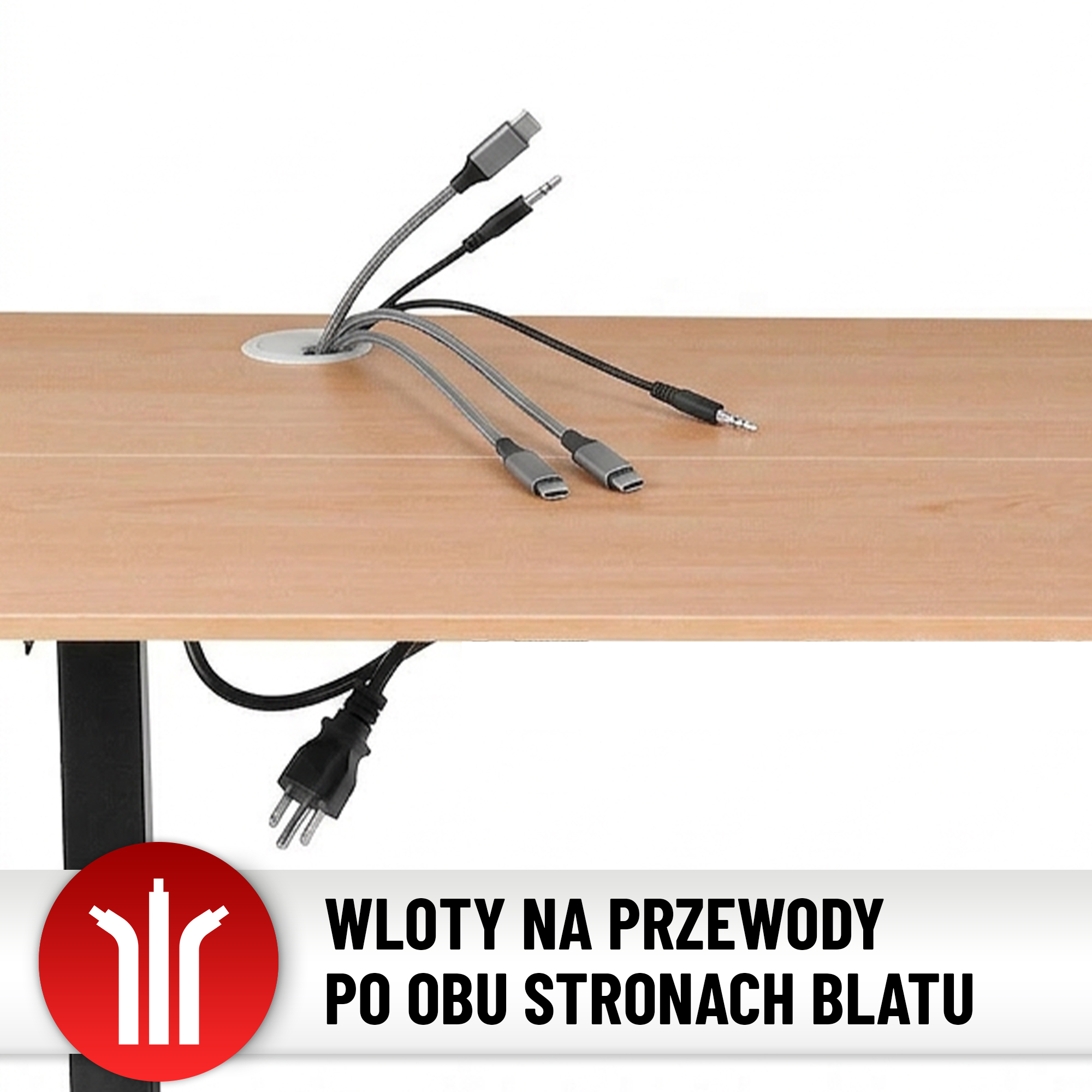▶️ Входи з обох боків стільниці — забезпечують зручне управління кабелями