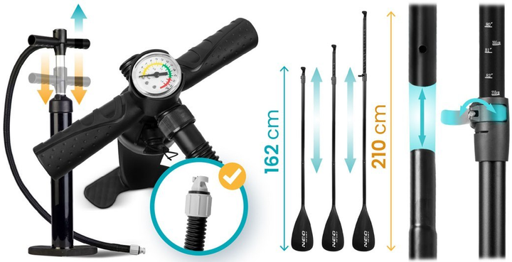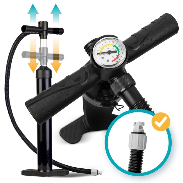 Двостороннє надування – накачує повітря як при натисканні, так і при підйомі поршня – ви можете надути дошку швидше.