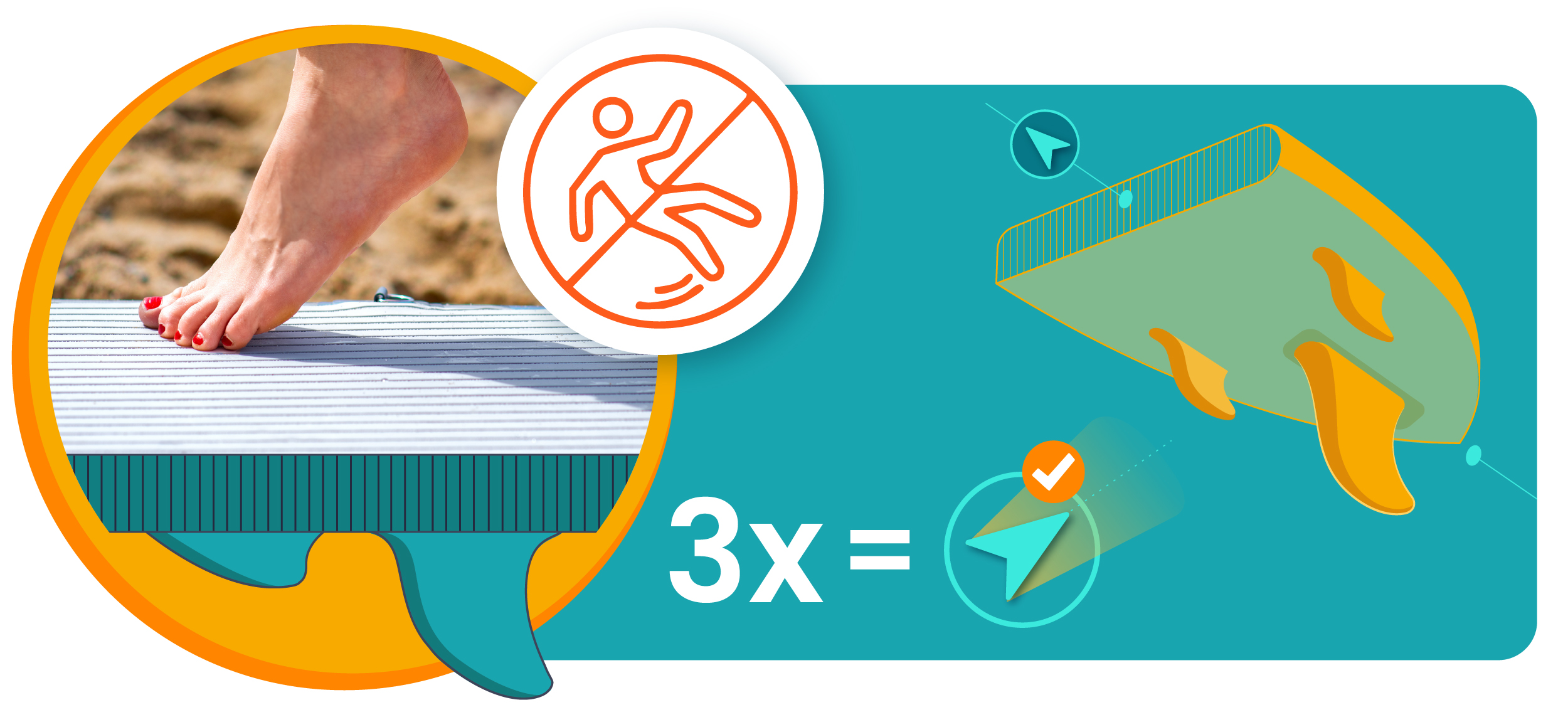 Протиковзка поверхня, покрита протиковзкою піною EVA – не ковзатимеш, навіть якщо стоїш босоніж.