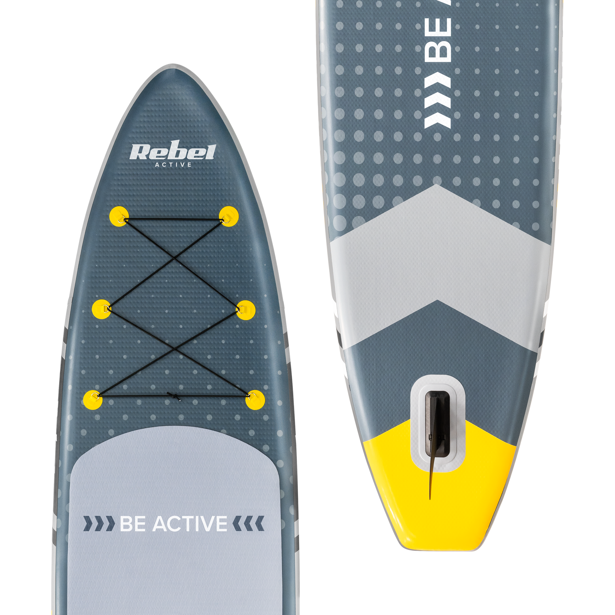 SUP‑дошка REBEL ACTIVE RBA‑4500 сірого кольору – надувна дошка для активного відпочинку на воді. Легка, міцна та стабільна, зручна для прогулянок, тренувань і водних пригод.