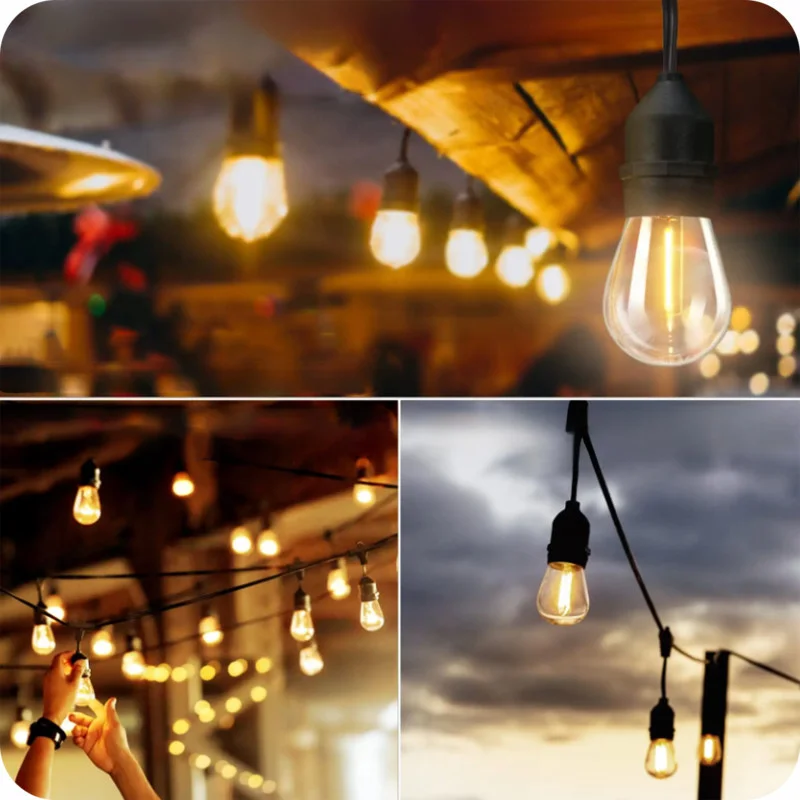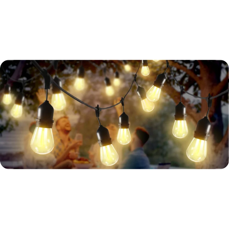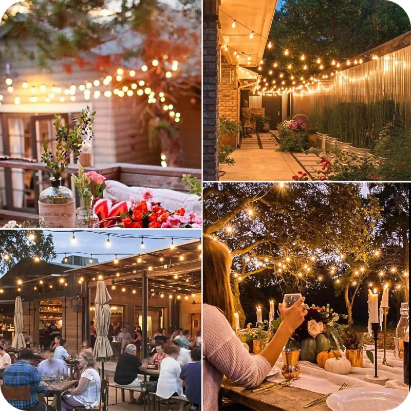 Світлодіодна вулична гірлянда KRUMAD 20м з лампочками E27 1Вт – яскраве та енергоефективне освітлення для саду, тераси чи балкону, водостійка та довговічна.